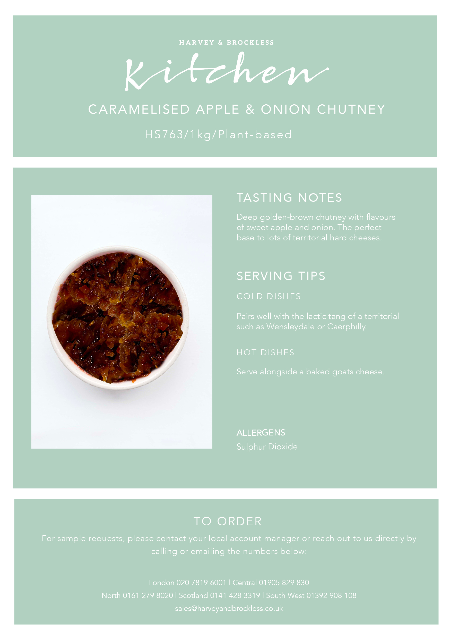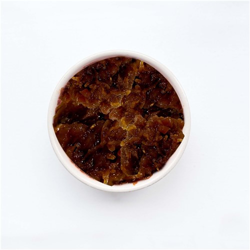 Ingredients:Granny Smith apples, granulated sugar, cider vinegar, water, dark brown sugar (cane sugar, colour: cane molasses, colour: caramel E150a), kibbled onion (SULPHITES), Turkish raisins (raisins, sunflower oil), ginger puree (ginger, salt, acidity regulator: citric acid), sea salt, pectin (pectin, sucrose), acidity Regulator: citric acid, ground black pepepr,