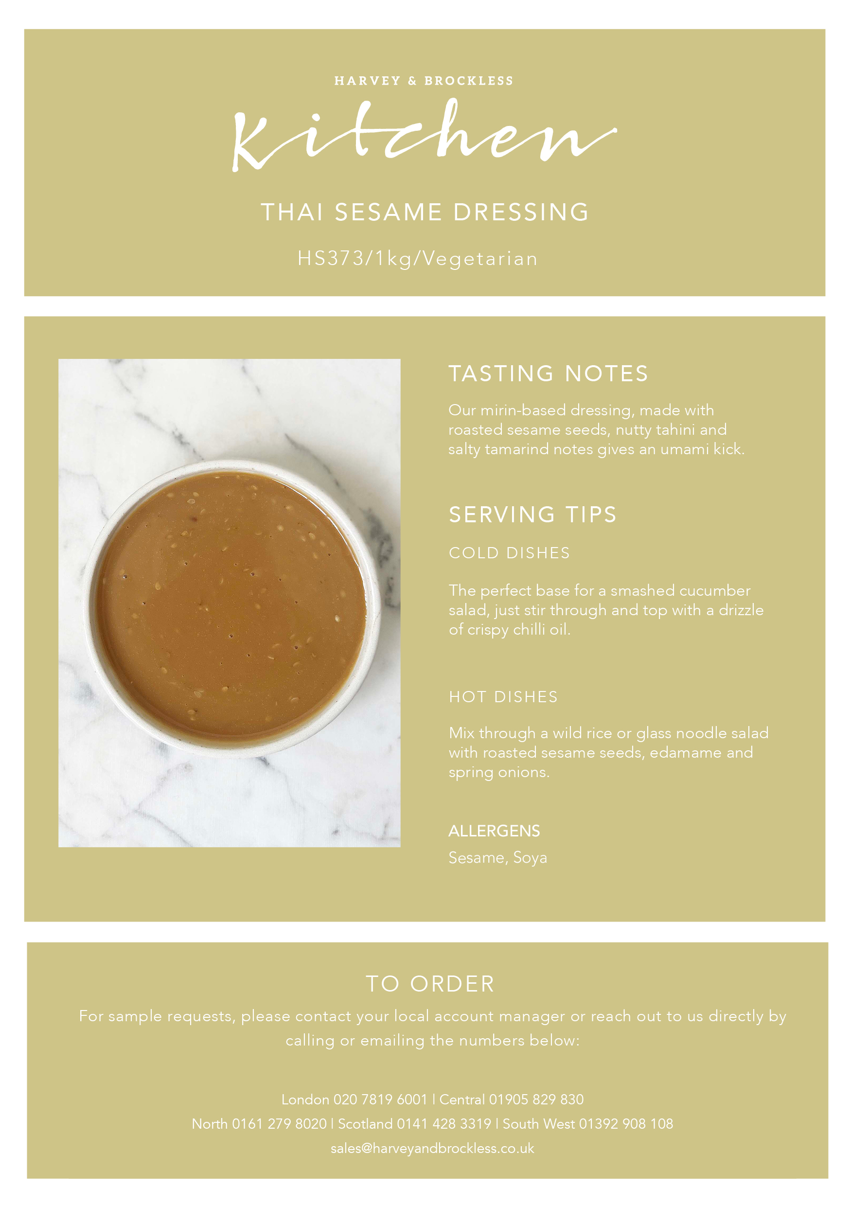 Ingredients: Mirin (Glucose Syrup, Water, Spirit Vinegar, Fermented Rice Alcohol [Water, Rice, Alcohol, Salt, Rice Malt], Sugar, Acidity Regulator (Citric Acid), Cane Molasses), Tahini Paste (29.3%) (Sesame Seeds), Tamari Sauce (Whole Soya Beans, Water, Sea Salt, Alcohol, Koji Seed (Aspergillus Oryzae)), Sugar, Sesame Oil (4.9%), White Wine Vinegar, Roasted White Sesame Seeds (2.7%).